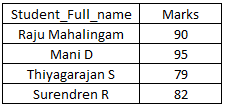 SELECT CONCAT(First_name, ‘ ‘, Last_name) as Student_Full_name, Marks from student;