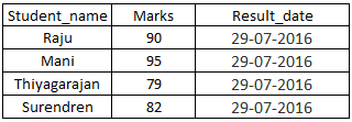 SELECT Student_name, Marks, FORMAT(Now(),’DD-MM-YYYY‘) AS Result_date from student;