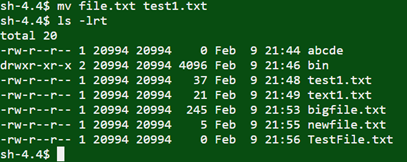 MV command in Unix, we have an ability to move the files to different name or can move the file to different directory . The below command is used to move the file to different name within the directory.